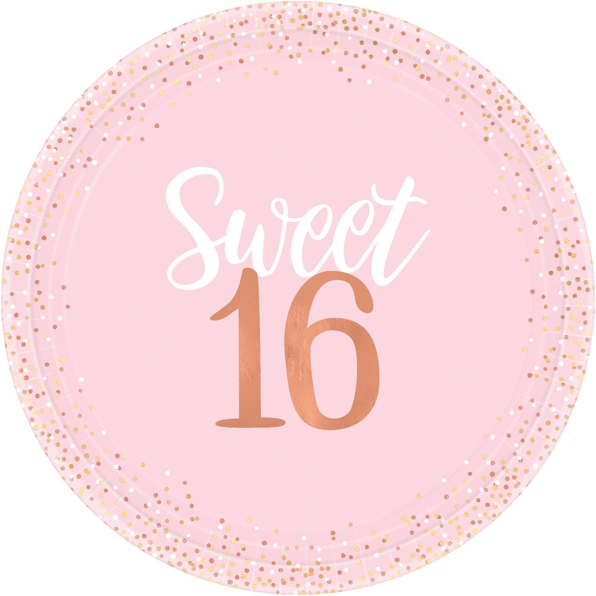 Metallic Rose Gold Pink Sweet 16 Dinner Plates 8ct Party City